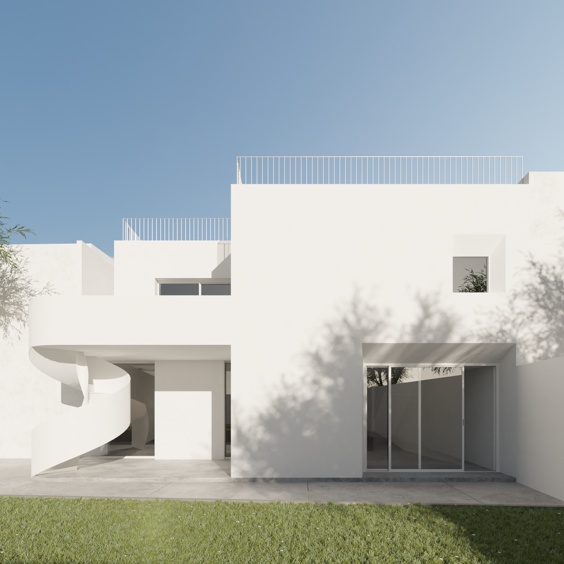 O novo volume regista uma intervenção reduzida na fachada principal, projetando-se a tardoz através de uma forma mais abstrata e depurada que recolhe luz, promove vistas e funde todo o ambiente da esfera privada.